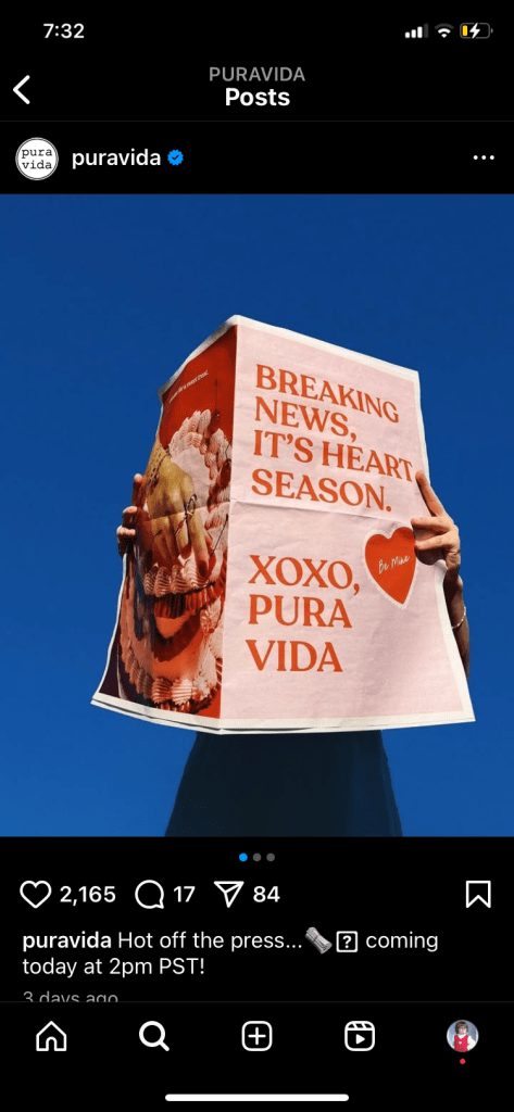 In recent years, engagement has started to grow even more by using trends and having a recognizable aesthetic that gets people excited for new launches and collaboration projects. The newest Instagram story is even a behind the scenes of their Valentines Product launch photoshoot, really allowing customers to feel a part of the brand.
