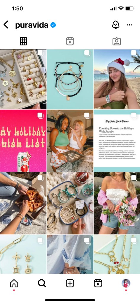 With only 11.3k posts, they have definitely picked up more of an online presents over the past five years. How I learned about Pura Vida for the first time was through my friend who is a brand ambassador. They were not influencers, just everyday people who loved the jewelry could become a ambassador and get their own personal discount code.