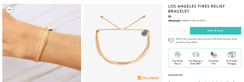 Overall, the brand’s main priority is charity. Pura Vida started because the founders wanted to donate to local jewelry makers in Costa Rica and they still intend to give back.