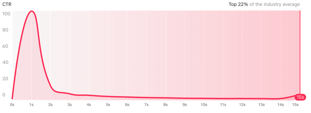 The video grabs attention and even better kept that attention throughout. The brand’s post is also in the top 5% for Conversion rate, so maybe learning from this might increase the budget allocation for the post to reach an even wider audience. The only thing is that it might be a hair too long. The most clicks were at the beginning of the video and at the end. The middle can sometimes get lost. However, it also drives people to a sign up landing page.