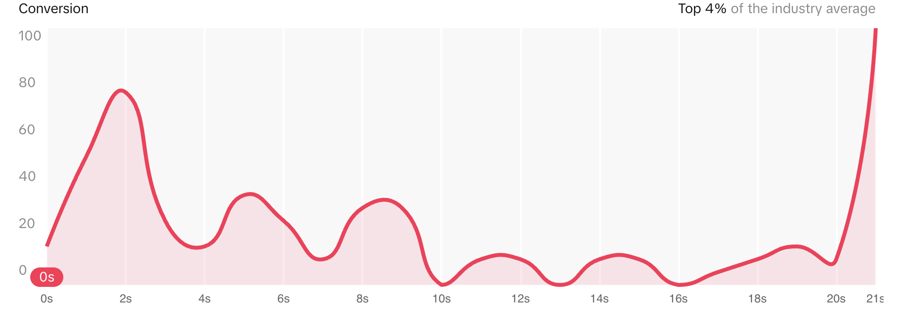 The video grabs attention and even better kept that attention throughout. The brand’s post is also in the top 5% for Conversion rate, so maybe learning from this might increase the budget allocation for the post to reach an even wider audience. The only thing is that it might be a hair too long. The most clicks were at the beginning of the video and at the end. The middle can sometimes get lost. However, it also drives people to a sign up landing page.