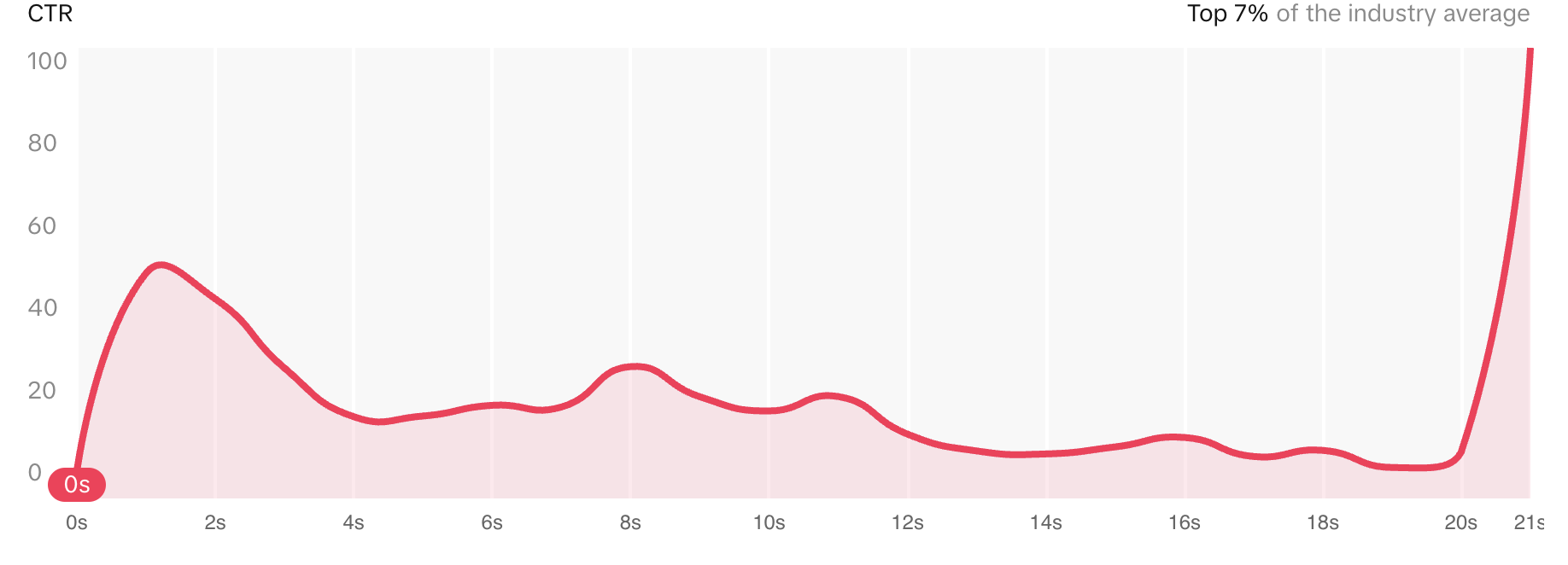 The analysis shows a steady consistency for retention on the video so maybe there is another key reason why the middle loses clicks. That is always something to think about. That is where something like A/B testing comes into play, maybe try switching platforms are changing the hashtags.