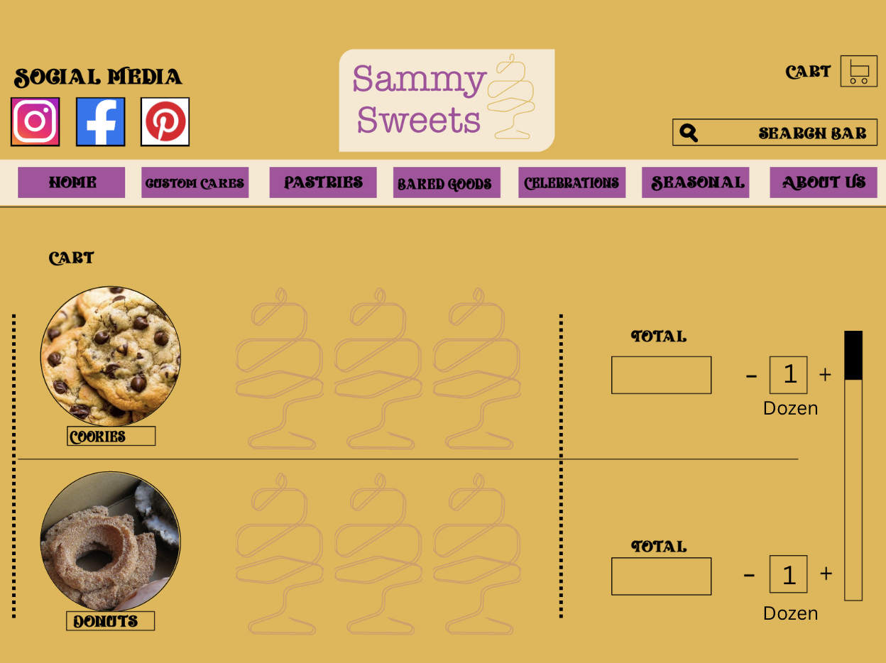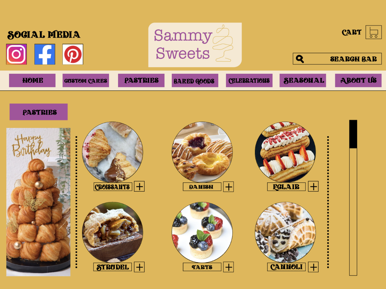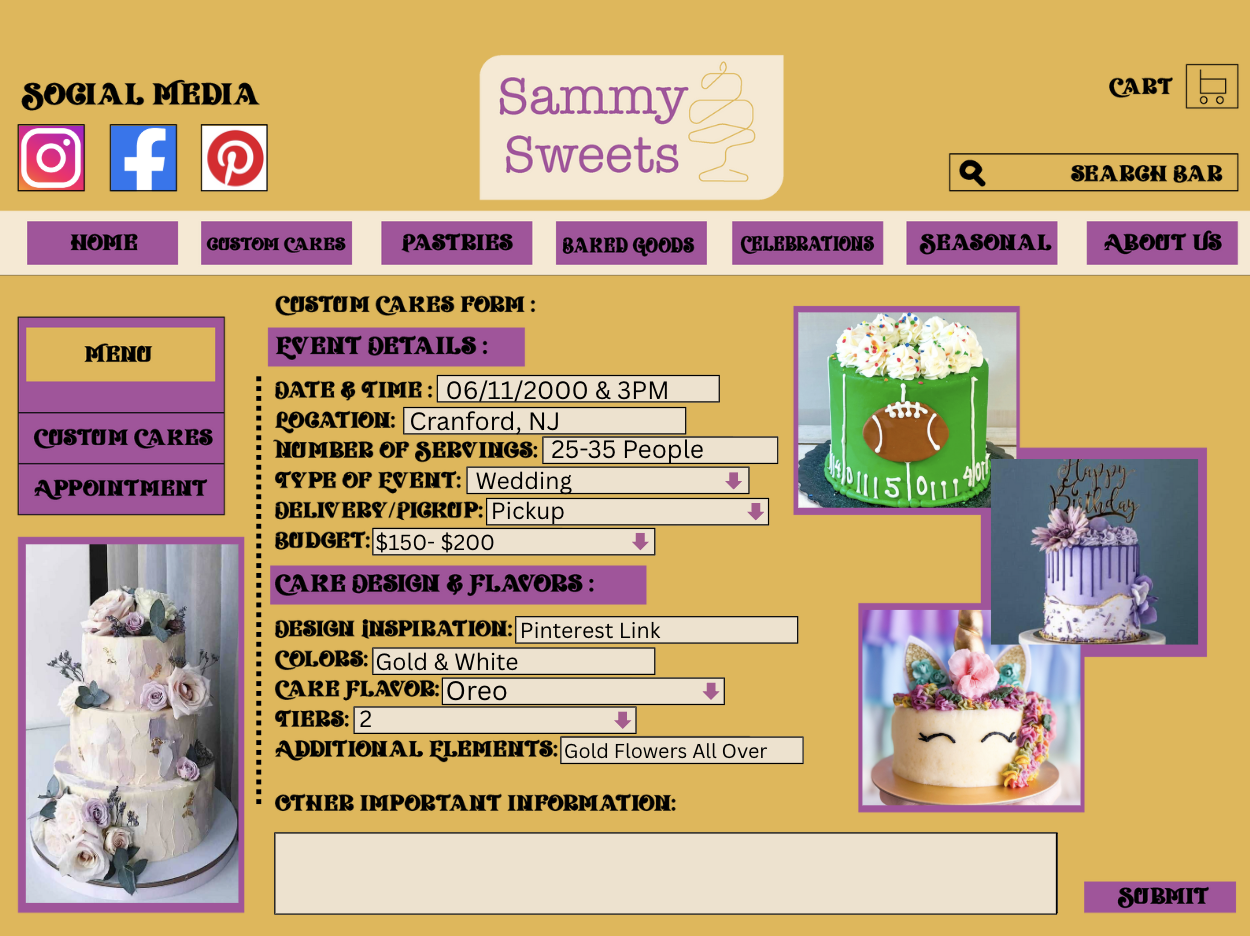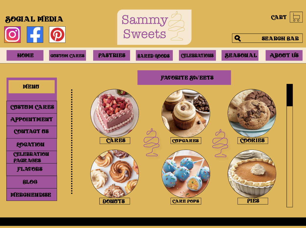 The home page is the main hub area, a place where people can find a lot of information. Including custom cake orders and setting up appointments. The main aspect of this company is custom orders and I want the audience to know that right away.