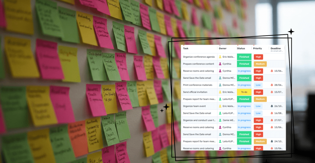 - Sticky Notes Everywhere: At one point, I had sticky notes covering my desk, my notebook, and even the edge of my laptop. It looked organized… until it didn’t. Notes got lost, duplicates popped up, and I had no real timeline.