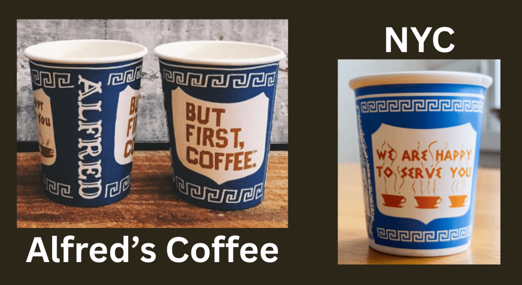 We live in what many call the experience economy, a time when we don’t just buy products, we buy feelings. A coffee shop isn’t just a place to grab caffeine; it’s the mood, the playlist, the warmth of the cup in your hands. Design is what shapes that experience, turning a simple product into a meaningful moment. A recent example of this is the coffee shop Alfred’s that use cups that look like the old fashion New York City cup that are famous in movies and pop-culture. It’s not just selling me a coffee but an opportunity to step into a world I never knew I could.
