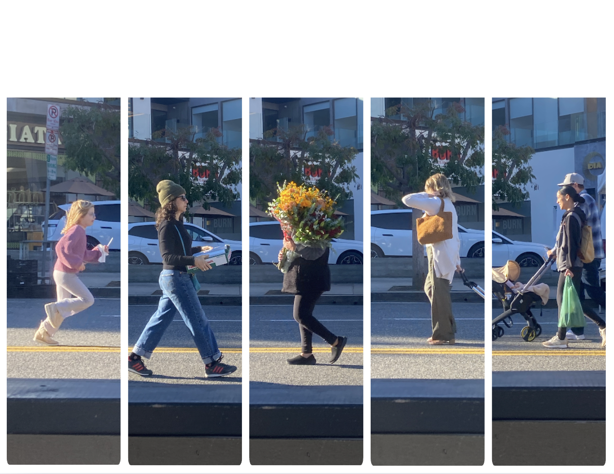Thematically, caregiving kept appearing in my photographs: a father pushing a stroller, a parent adjusting a baby wrap, someone bending to pick up a fallen tote bag. Nicole Dahmen’s work on solutions-focused visual journalism argues that storytelling should broaden what we see as meaningful, highlighting resilience and care rather than conflict (Dahmen). While my project is not explicitly solutions journalism, it reflects Dahmen’s emphasis on capturing cooperation and human connection.
