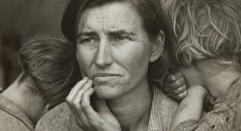 Dorothea Lange’s Migrant Mother (1936) is one of the most enduring images of the Great Depression, portraying Florence Owens Thompson an impoverished mother of seven at a pea pickers’ camp in Nipomo, California. The photograph became significant for its time because it humanized the economic crisis for millions of Americans, influencing public perception and prompting federal aid to migrant worker communities.