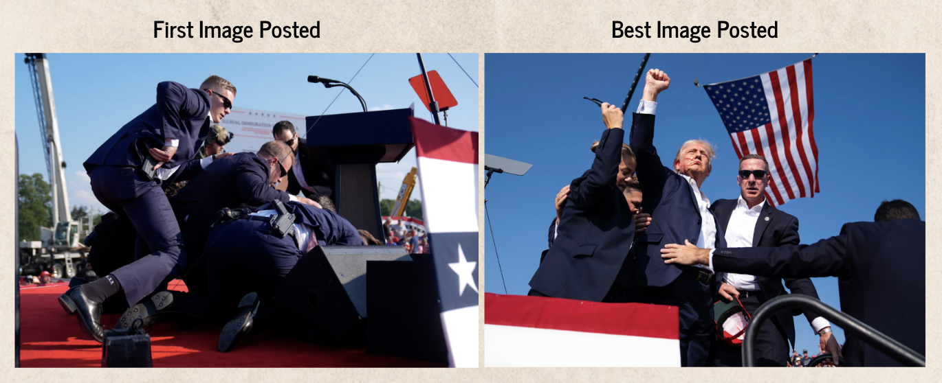 After the 2024 assassination attempt on Trump, many social media users claimed that the widely shared photo of him being escorted away by security was an AI-generated fake pointing to alleged anomalies such as distorted hands or suspicious lighting. These claims spread rapidly across X and other platforms before fact-checkers identified the original image as a genuine photograph taken by a reputable news photographer. The circulation of the false narrative was fueled by existing distrust in media images and the growing prevalence of synthetic media tools, which undermined public confidence even after the image was debunked.